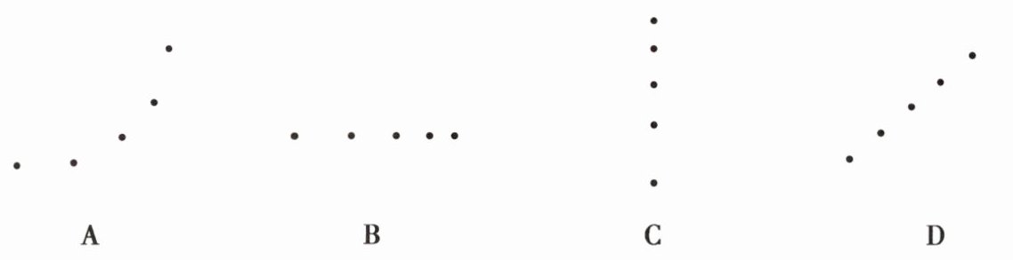 7. 下面是利用每秒闪光10次的照相装置拍摄到的A、B、C、D四个物体运动的闪光照片(图中的黑点表示物体),其中受到平衡力作用的物体是()