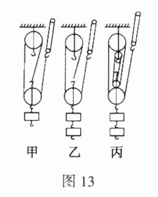 18. 某实验小组在“测滑轮组机械效率”的实验中得到的数据如下表所示,第1、2、3次实验装置分别如图13中的甲、乙、丙所示。