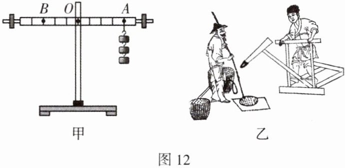 (4)如图12乙所示是《天工开物》记载的踏碓(碓:duì,古代的一种给稻谷去壳的工具。用脚连续踏杆的一端,另一端就会连续起落)。踏碓属于____杠杆。