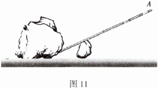 16. 如图11所示,用一根硬棒撬一块大石头,棒的上端A是动力作用点。请在图上画出撬动石头的最小动力F。
