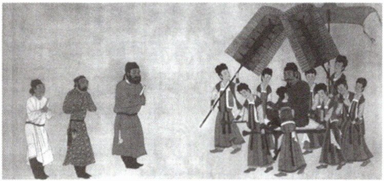 材料一:下图是唐朝画家阎立本所绘制的《步辇图》。