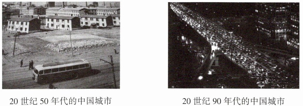 (1)提示:材料一——城市面貌由落后到现代;交通、运输工具发生巨大变革。材料二——居民居住面积增加,生活得到改善。