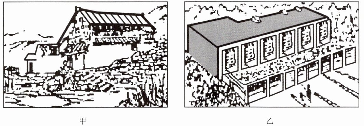 比较甲、乙两图所表示的屋顶有什么不同?并分析原因。
