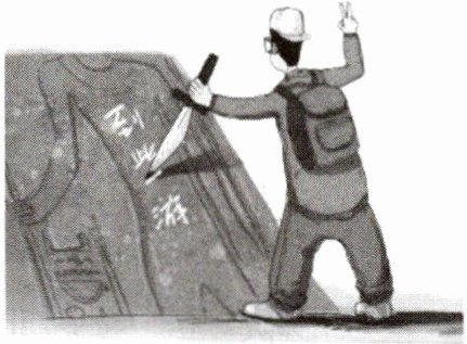 我会走上前去,礼貌地对他说:“叔叔,您好!景区的这些景观是供大家欣赏的,我们应该好好爱护它们。您这样刻字是不文明的行为,会破坏景区的美观,也会影响其他游客的观赏体验。让我们一起做文明游客,好吗?”