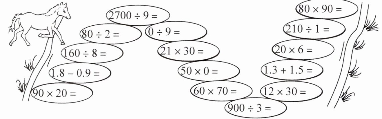 $90\times20 = 1800$;$60\times70 = 4200$;$12\times30 = 360$;$900\div3 = 300$。