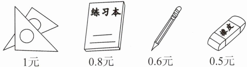 三角板、练习本;三角板、铅笔;三角板、橡皮;练习本、铅笔;练习本、橡皮;铅笔、橡皮