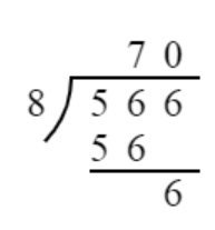 解:对于$566÷8$,根据除法的竖式计算方法,$8×70 = 560$,$566-560 = 6$,商是$70\cdots\cdots6$,原除法竖式中商$700$错误,因为$8×700=5600\gt566$。