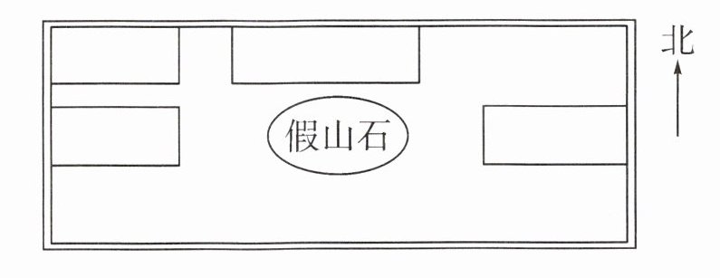 2. 走进服装城大门,正北面是假山石和童装区,假山石的东面是男装区,西面是女装区,女装区的北面是中老年服装区。根据以上的描述,请你把相应的序号标在适当的位置上。
