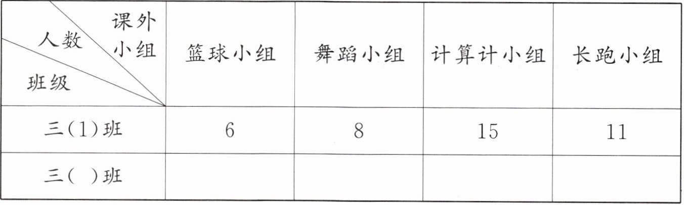 )人。(3)三(1)班参加人数最多的小组比三(2)班参加人数最少的小组多(