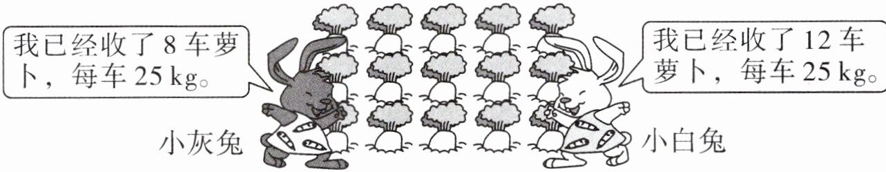 (1)小灰兔和小白兔共收了多少千克萝卜?