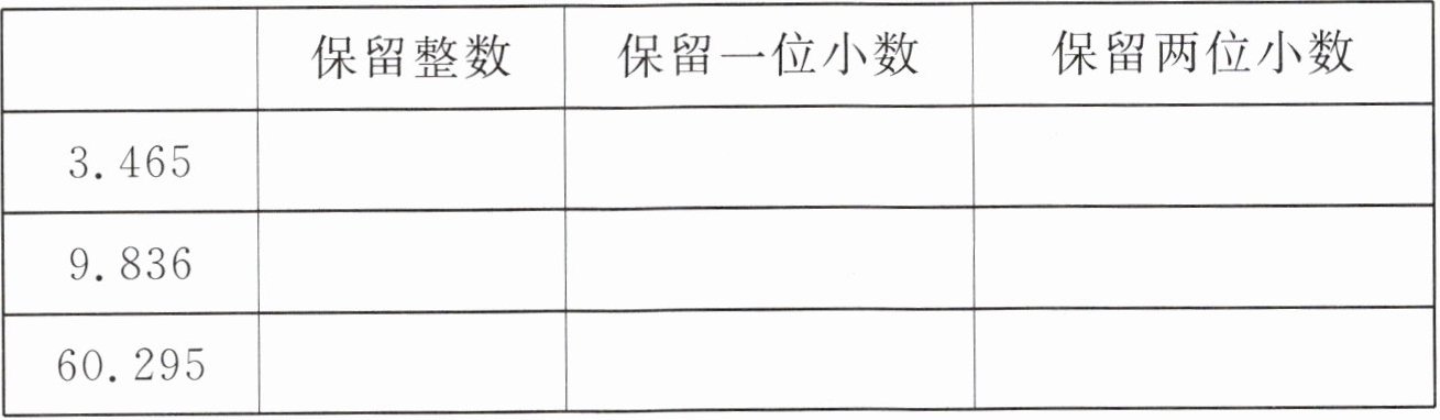 | | 保留整数 | 保留一位小数 | 保留两位小数 |