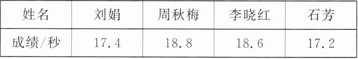 她们完成接力赛的总成绩是$\boldsymbol{72}$秒。