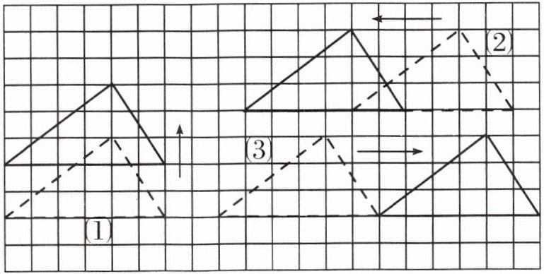 3. 图形(1)向()平移了()格;图形(2)向()平移了()格;图形(3)向()平移了()格。