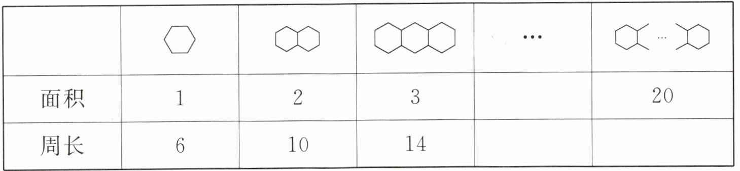 从左到右,从上到下:$n$($n$表示任意正整数,代表面积);$4n + 2$($n$表示任意正整数,代表面积对应的周长规律表达式);$82$。
