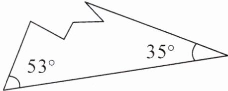4. 如右图,一张三角形纸片被撕去了一个角。撕去的角是()度,原来这张纸片的形状是()三角形。