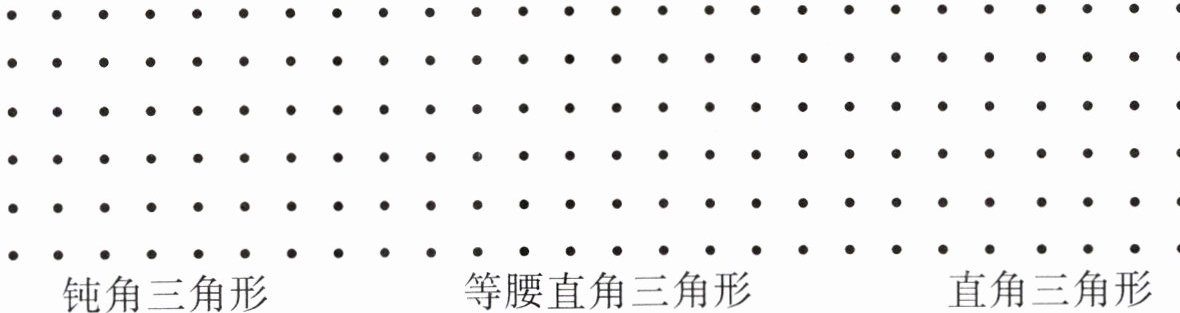 钝角三角形:连接三个点,使其中一个角明显大于$90^{\circ}$(可根据点子间的横向、纵向和斜向距离来构造)。