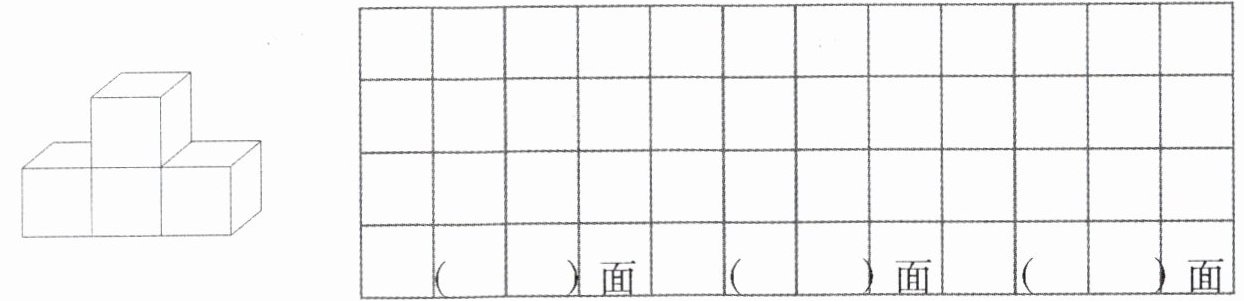 1.下面的物体分别从前面、左面、上面看到的形状是什么?请你在方格中画出来,并在()里标清楚。