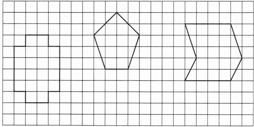 1. 求出下列图形的面积。(每个小方格的面积是$ 1 \mathrm{cm}^{2} $)