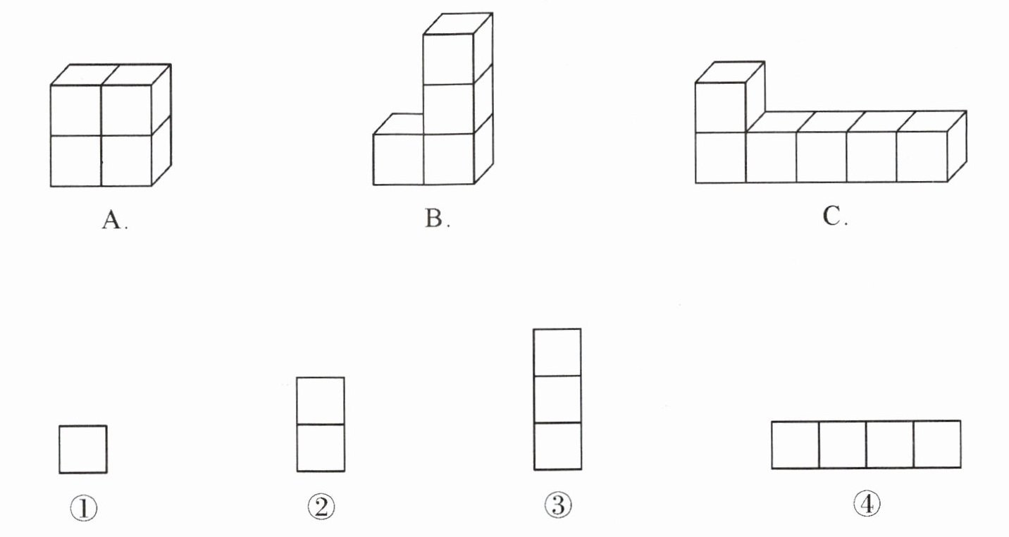 从左面看到的形状是(),从上面看到的形状是(),从前面看到的形状是()。