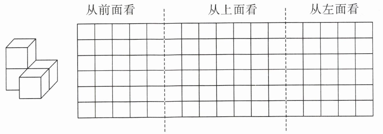 四、在方格纸上分别画出左图从前面、上面和左面看到的图形。