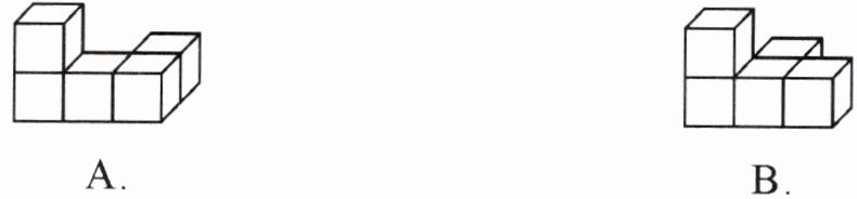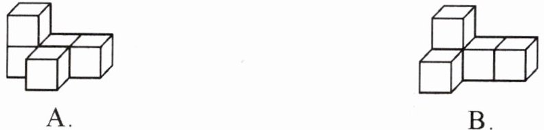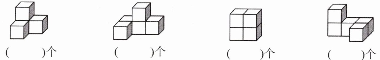 2. 横着摆3个正方体,先在最左边的上面放一个正方体,再在最右边的后面放一个正方体,这个物体是()。