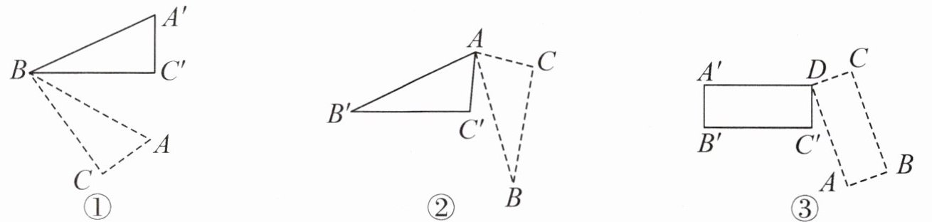 3. 如图所示,①中的图形是以点()为中心旋转的,②中的图形是以点()为中心旋转的,③中的图形是以点()为中心旋转的。