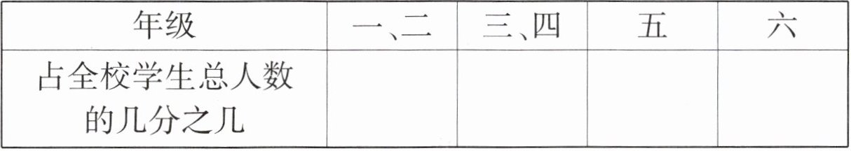 (1)算出各年级学生人数占全校总人数的几分之几,填在表内。