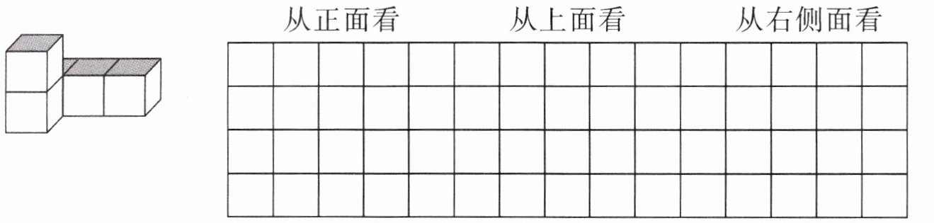 - 从右侧面看:在表格中对应最右边一列涂$2$个(上下)。 (由于没有具体方格坐标,按照描述的相对位置关系绘制)。
