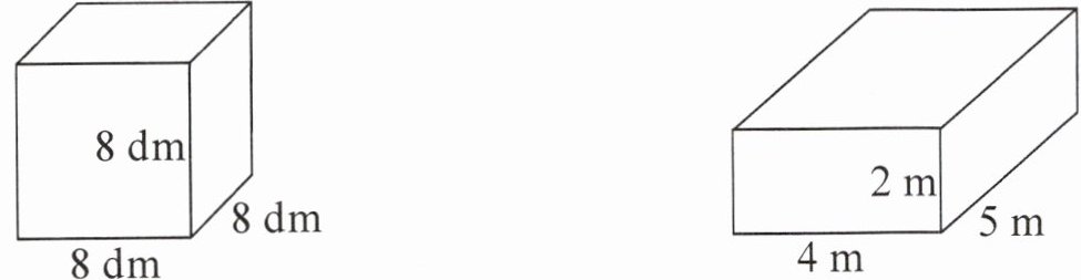 正方体体积为$512dm^{3}$,长方体体积为$40m^{3}$。