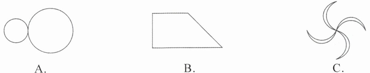 1. 下面的图形中,()是旋转而成的;()是轴对称图形。