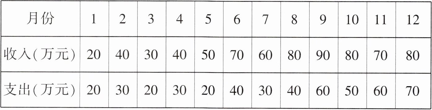 (3)十月份的收入和支出相差()万元,()月份的收入与支出相差最大。