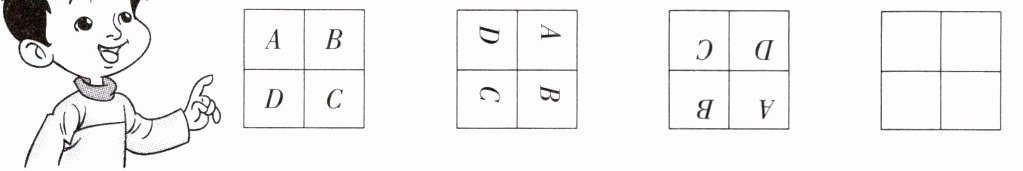 第一行从左到右是$B$、$C$;第二行从左到右是$A$、$D$。(即$\begin{array}{|c|c|}\hline B & C \\\hline A & D \\\hline\end{array}$)