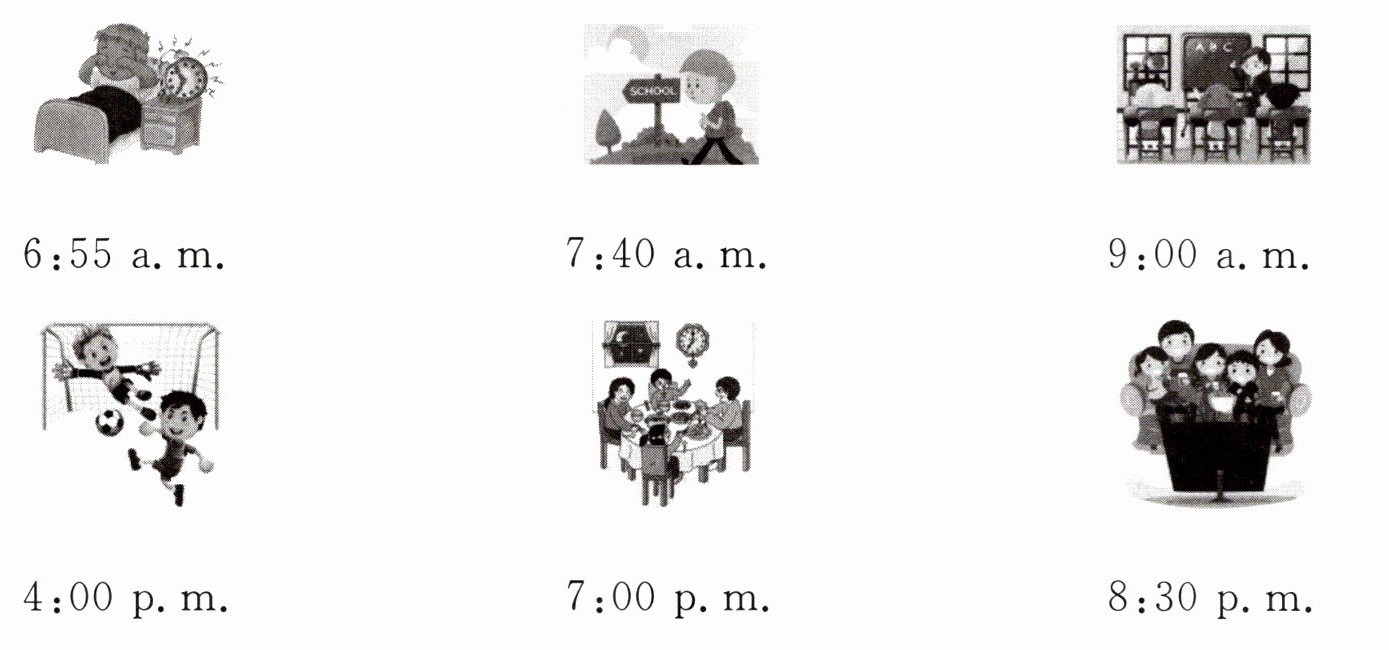 以“My Day”为题写一篇短文。根据下面的图片,介绍自己一天的活动安排及时间。