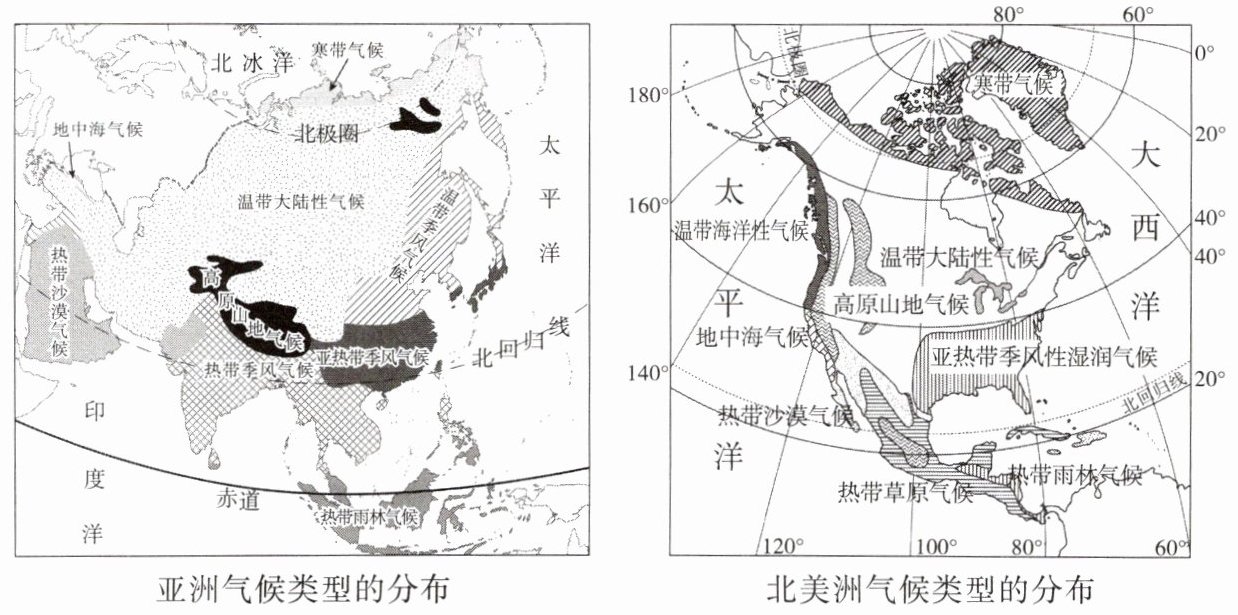 3. 读亚洲气候类型分布图和北美洲气候类型分布图,完成下面小题。
