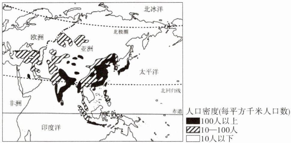 (3)亚洲人口密度在100人/平方千米以上地区分布的最主要的气候类型是( )