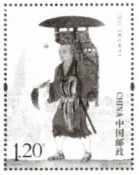 9. 右图邮票所示人物曾西行十七载,一心只为到天竺求取真经,探求佛法的真谛,“宁可西行一步死,绝不东归半步生”。他是(
