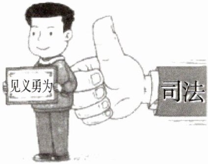 选项A:漫画中“司法”给“见义勇为”撑腰,体现了司法维护公平正义,有力支持见义勇为行为,该选项正确。