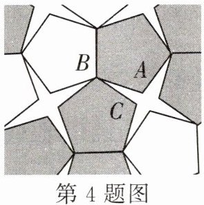 4. 某广场的地面是由相同的正五边形与相同的四角星形(四个尖角的度数相同)铺成的无缝隙、不重叠的图形,如图是该广场地面的一部分,则图中四角星形的尖角$ ∠ABC $的度数为______.