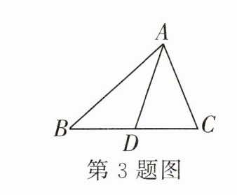 3. 如图,在△ABC中,$ AB = 9 $,$ AC = 7 $,AD为中线,则△ABD与△ACD的周长之差为______.