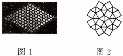 3. 相信很多人家里都有“巧手妈妈”,图1是一位巧手妈妈手工织的坐垫,图2是某学校操场铺的地砖. 它们或是用单独的正多边形,或是用多种正多边形混合拼接成的,拼成的图案严丝合缝,不留空隙. 从数学角度看,这些作品就是用一些不重叠摆放的多边形把平面的一部分覆盖,通常把这类问题叫作用多边形覆盖平面(或平面镶嵌)的问题.