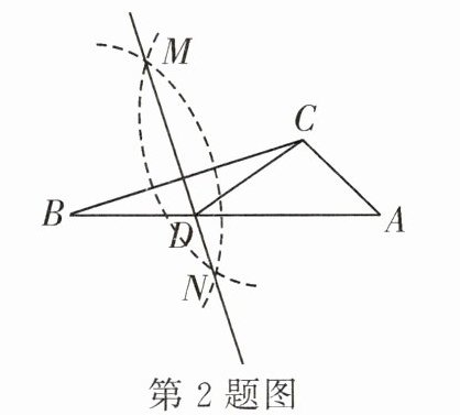 2. 如图,在已知的$\triangle ABC$中,按以下步骤作图:①分别以$B$,$C$为圆心,以大于$\frac {1}{2}BC$的长为半径作弧,两弧相交于点$M$,$N$;②作直线$MN交AB于点D$,连结$CD$.若$AC= 3$,$AB= 9$,则$\triangle ACD$的周长为______.
