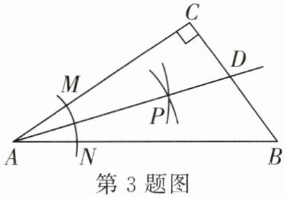 3. 如图,在$\triangle ABC$中,$∠C= 90^{\circ }$,以点$A$为圆心,适当长为半径画弧,分别交$AC$,$AB于点M$,$N$,再分别以点$M$,$N$为圆心,大于$\frac {1}{2}MN$的长为半径画弧,两弧交于点$P$,作射线$AP交BC于点D$.若$CD= \frac {5}{2}$,$AB= 10$,则$\triangle ABD$的面积是______.