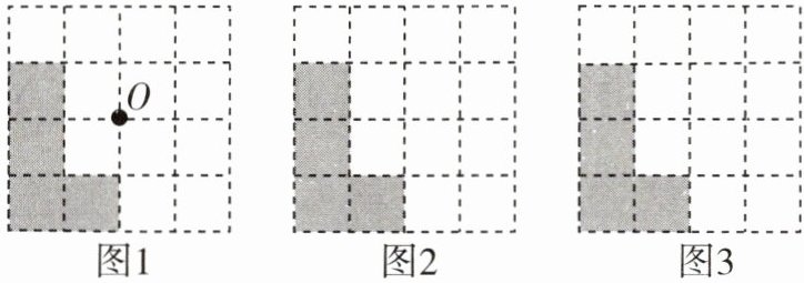 (1)在图$1中再涂黑4$格,使新涂黑的图形与原来的“L形”关于对称中心点$O$成中心对称.