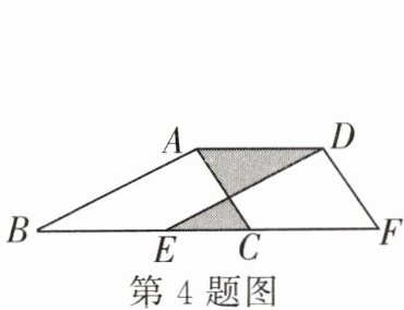 4. 如图,$AB= 4\mathrm{c}\mathrm{m}$,$BC= 5\mathrm{c}\mathrm{m}$,$AC= 2\mathrm{c}\mathrm{m}$,将$\triangle ABC沿BC方向平移a\mathrm{c}\mathrm{m}(0\lt a<5)$,得到$\triangle DEF$,连结$AD$,则阴影部分的周长为______$\mathrm{c}\mathrm{m}$.