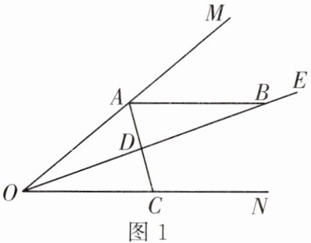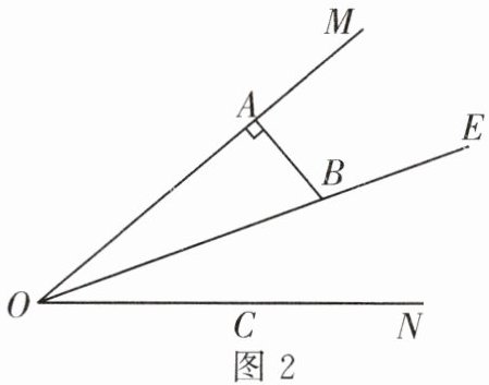 2. 已知:$\angle MON = 40^{\circ}$,$OE平分\angle MON$,点$A$,$B$,$C分别是射线OM$,$OE$,$ON$上的动点($A$,$B$,$C不与点O$重合),连结$AC交射线OE于点D$。
