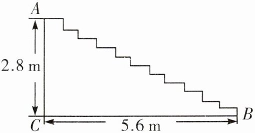已知楼梯纵向长度$AC = 2.8m$,横向长度$BC = 5.6m$,所以地毯的长度为$2.8 + 5.6=8.4m$。