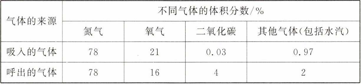 5. 下表为人体吸入、呼出的气体成分含量变化,呼出气体中的二氧化碳含量明显增加,这些二氧化碳根本来自于()