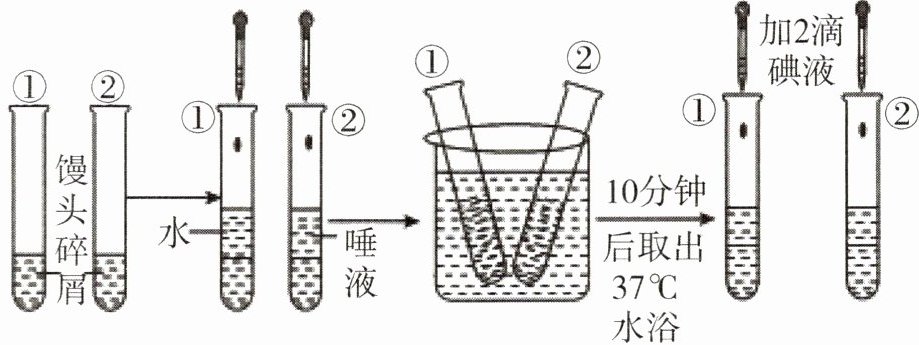 4. 如图为“探究唾液对淀粉的消化作用”的实验过程示意图。下列分析正确的是()