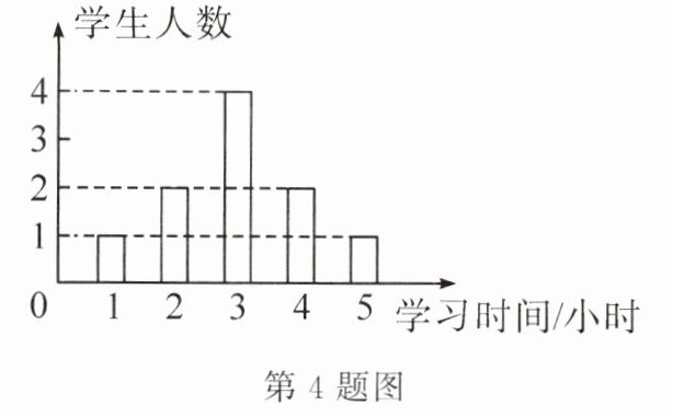 从条形统计图中可知,学习$1$小时的有$1$人,学习$2$小时的有$2$人,学习$3$小时的有$4$人,学习$4$小时的有$2$人,学习$5$小时的有$1$人。