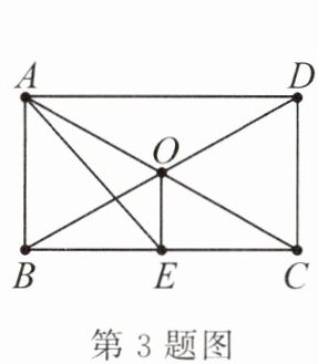3. 如图,已知O是矩形ABCD对角线的交点,AE平分$ ∠BAD $,$ ∠AOD = 120 ^ { \circ } $,$ ∠AEO = $____.